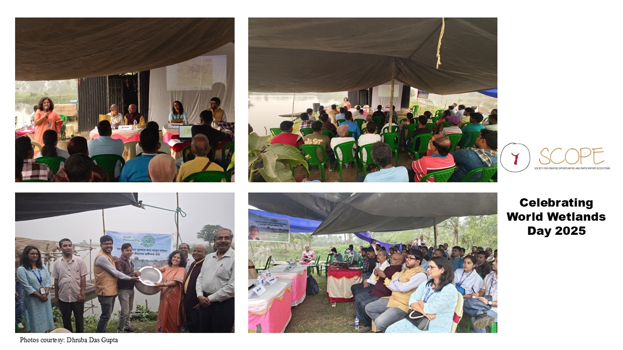 The theme of World Wetlands Day 2025 was Protecting Wetlands for Our Common Future. We brought together on this occasion eminent scientists – Dr Pradip Dey, Director of ICAR-Agricultural Technology Application Research Institute, Kolkata, Dr Bijay K Mahapatra, Retd Principal Scientist CIFE, Dr Swagat Ghosh, Senior Scientist Sasya Shyamala Krishi Vigyan Kendra and Dr Gunjan Karnatak, Scientist, Central Inland Fisheries Research Institute. The most important part of the celebrations were the discussions between the scientists and the fish farmers regarding the help that was needed in updating themselves with the modern knowledge of pond management and disease management, to ensure wetland conservation.